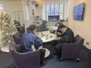 12月24日に社員の労をねぎらい、クリスマスケーキなどを皆で食べました。